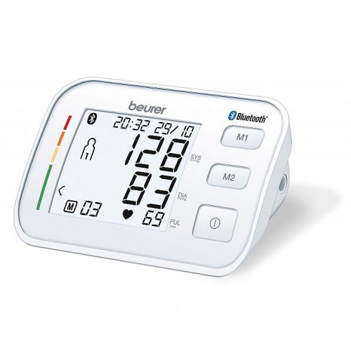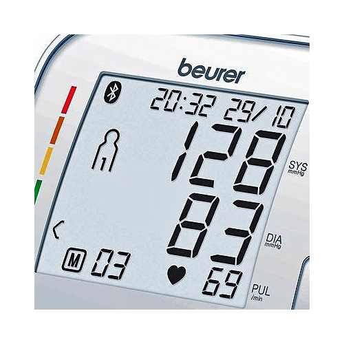 Автоматический тонометр на плечо для измерения артериального давления Beurer BM 57 с технологией Bluetooth Low energy, которая позволяет передавать данные на мобильные устройства или компьютеры для дальнейшего анализа с помощью приложения Beurer HealthManager.