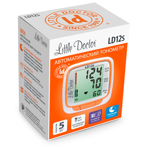 Говорящий компактный тонометр на запястье Little Doctor LD12s для взрослых (старше 15 лет) пациентов (с функцией озвучивания результатов голосом), что делает его особенно удобным для людей с ослабленным зрением.