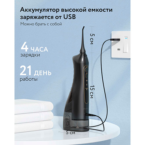 ИРРИГАТОР ПОРТАТИВНЫЙ Fairywill 5020E (чёрный, белый)